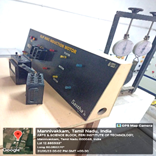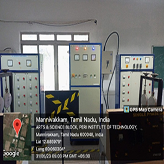 The objective of this electrical machines lab is to give the students a favourable atmosphere to comprehend certain crucial ideas and applications in the field of electrical machines and energy conversion systems. This laboratory is designed to help students become proficient in the operation, testing, and analysis of various machines such as DC motors, transformers, synchronous and induction machines. It enables students to perform load tests, speed-torque analysis, and efficiency evaluations under different operating. The objective of this lab is to give the students a favourable atmosphere to comprehend certain crucial ideas and applications in the field of electrical machines and energy conversion systems. This laboratory is designed to help students become proficient in the operation, testing, and analysis of various machines such as DC motors, transformers, synchronous and induction machines. It enables students to perform load tests, speed-torque analysis, and efficiency evaluations under different operating conditions. Additionally, the lab provides hands-on experience in studying machine conditions. Additionally, characteristics, controlling motor performance using, the lab provides hands-on experience in studying machine characteristics, controlling motor starters and braking methods, and understanding performance using starters and braking methods, and understanding concepts like voltage regulation, arm concepts like voltage regulation, armature reaction, and power factor correction. The students can also learn to simulateature reaction, and power factor correction.