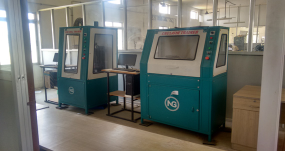 This workshop covering an area of 660 sq m is mainly for experimenting with IC engines. Internal combustion engines or IC engines which are the ones used in two wheelers, cars and Buses and trucks. Here the candidates gain hands on knowledge working with both the cut models of the engines and working engines.
